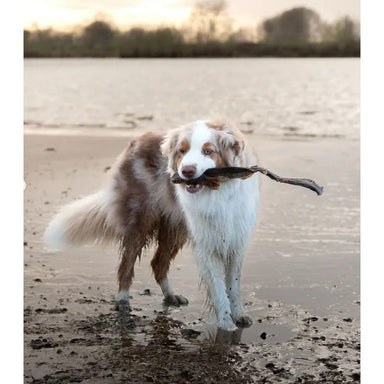 Dette tyggeben giver hunden noget savlende og tilfredsstillende at gnave, hvilket hjælper med at rense tænder og støtte sundt tandkød. Den lange tyggetid giver mental stimulering og en følelsesmæssig tilfredsstillelse, som kan være særligt nyttig under træning eller som en aktiv belønning efter leg.